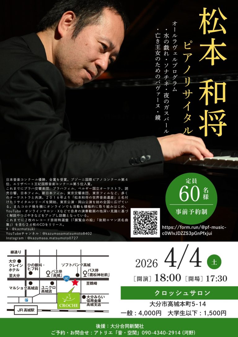 - 2025.11.08お知らせ渡邊智道ピアノリサイタル in クロッシュサロン