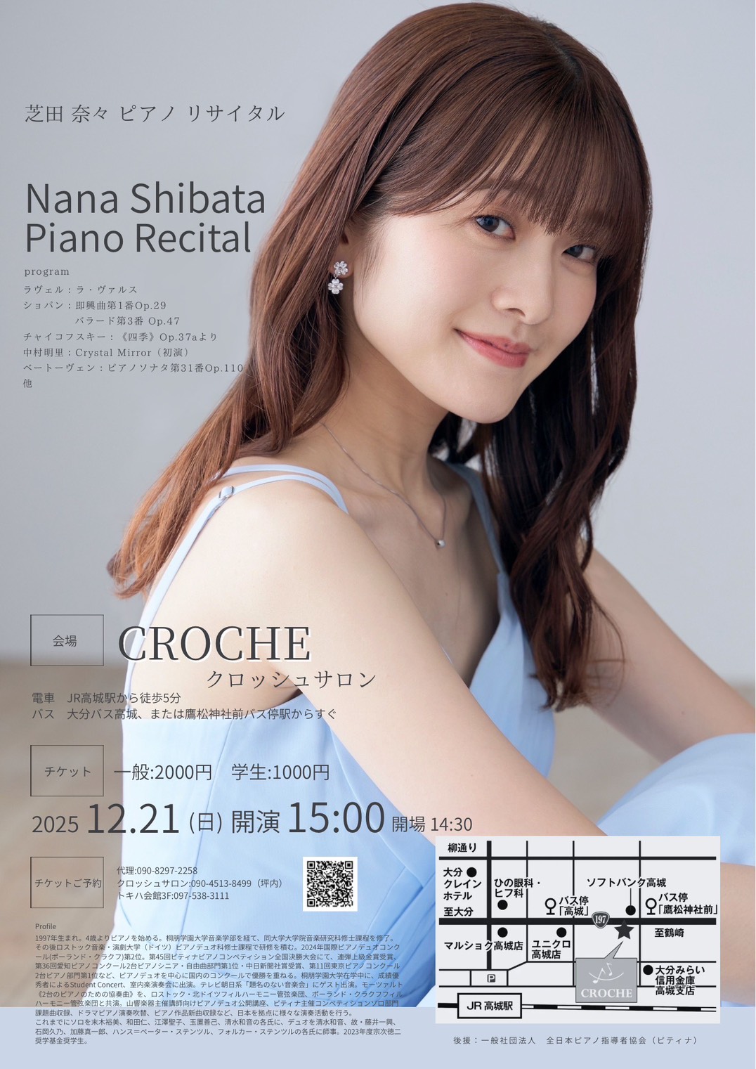 2025.12.21に芝田奈々ピアノリサイタルが開催されます。